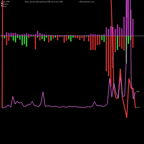 PVM Price Volume Measure chartss of daily price volume action, Weekly price volume action, Monthly price volume action of VAXX NASDAQ