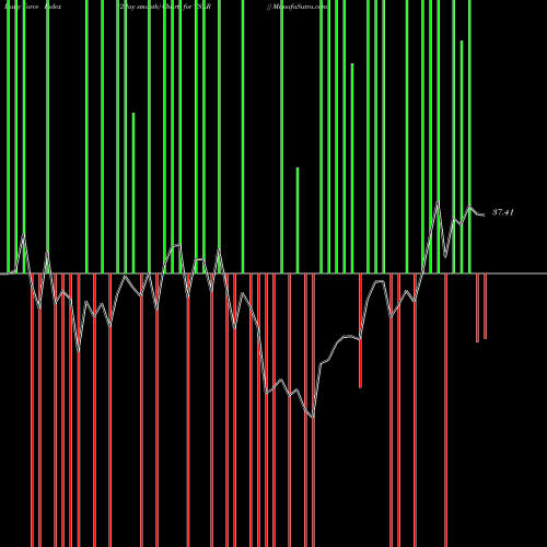 A force index chart is a relationship between price of stock and volume. Small bars are not of much significance, but a large bar tells that price either went up, or down, and volume was high too. If bars are red, it means prices fell compared to previous prices. The black line is the price line.