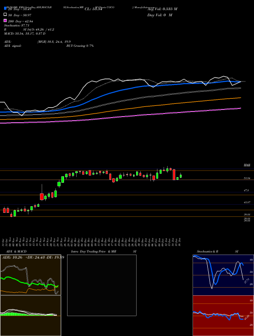 Recent prices of COCO are as follows: Daily volume is divided by 10 day averaged volume