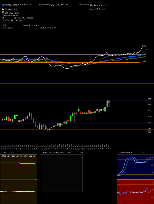 Recent prices of LAB are as follows: Daily volume is divided by 10 day averaged volume