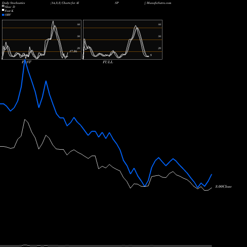 Stochastics Fast,Slow,Full chartss of Daily stochastics, Weekly stochastics, Monthly stochastics of AISP NASDAQ