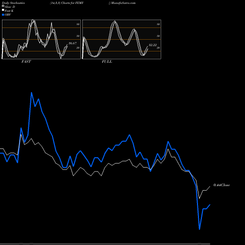 Stochastics Fast,Slow,Full chartss of Daily stochastics, Weekly stochastics, Monthly stochastics of FEMY NASDAQ