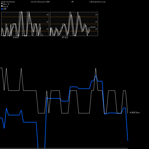 Stochastics Fast,Slow,Full chartss of Daily stochastics, Weekly stochastics, Monthly stochastics of GRDIW NASDAQ