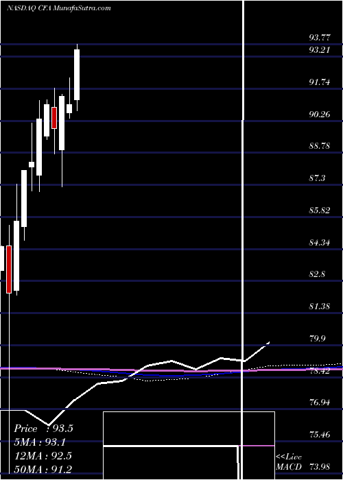 Volume Weighted Averaged Price (VWAP) for short term is 92.31 and VictorysharesUs CFA stock is trading above this level. This is a good sign for the stock and it could move higher. VWAP is rising upwards.