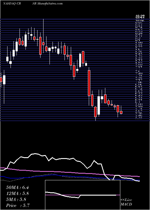 Volume Weighted Averaged Price (VWAP) for short term is 5.78 and CorsairGaming CRSR stock is trading below this level. This means that stock is falling with high volumes. VWAP is falling down