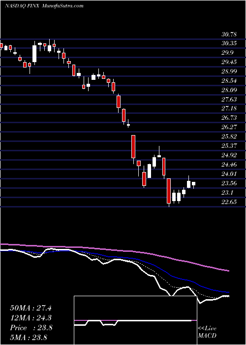 Global X FINX WideScreen charts, DMA,SMA,EMA technical analysis, forecast prediction, by indicators ADX,MACD,RSI,CCI NASDAQ stock exchange