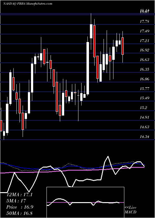 Tomorrow's movement Prediction of First Bank FRBA is bearish. The stock has broken weekly support. An up move can be expected only after it starts trading above 17.25
