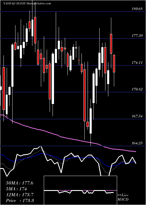 Volume Weighted Averaged Price (VWAP) for short term is 172.56 and ManhattanAssociates MANH stock is trading above this level. This is a good sign for the stock and it could move higher. VWAP is rising upwards.