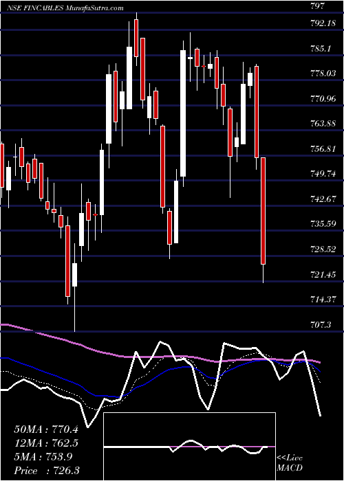 Volume Weighted Averaged Price (VWAP) for short term is 756.99 and FinolexCables FINCABLES stock is trading below this level. This means that stock is falling with high volumes. VWAP is falling down