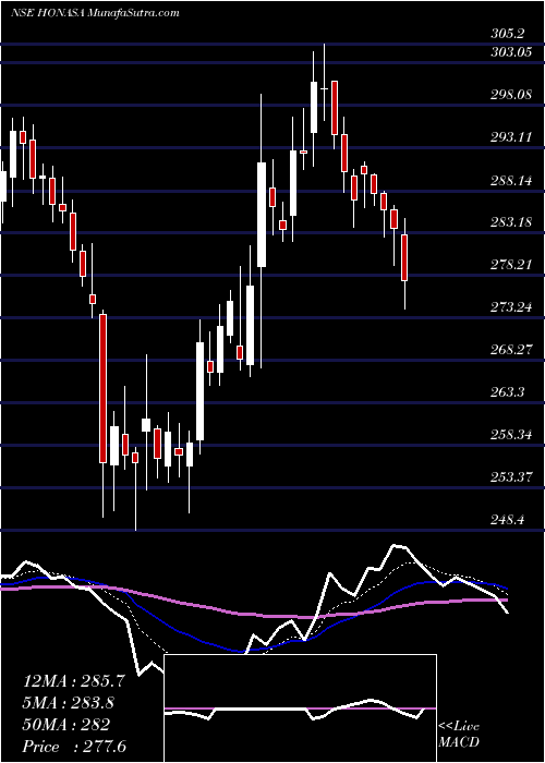 Volume Weighted Averaged Price (VWAP) for short term is 286.48 and HonasaConsumer HONASA stock is trading below this level. This means that stock is falling with high volumes. VWAP is falling down
