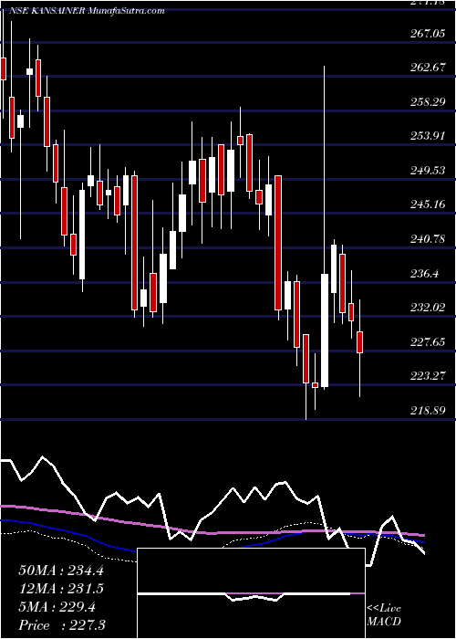 Volume Weighted Averaged Price (VWAP) for short term is 231 and KansaiNerolac KANSAINER stock is trading below this level. This means that stock is falling with high volumes. VWAP is falling down