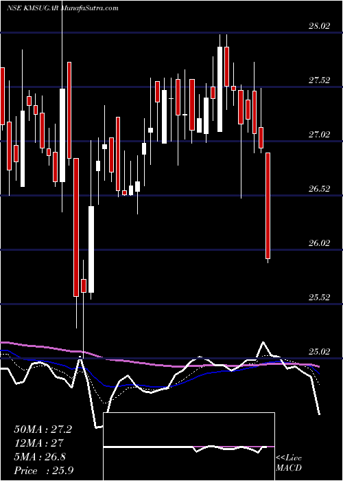 Tomorrow's movement Prediction of K M KMSUGAR is bearish. The stock has broken weekly support. An up move can be expected only after it starts trading above 27.25