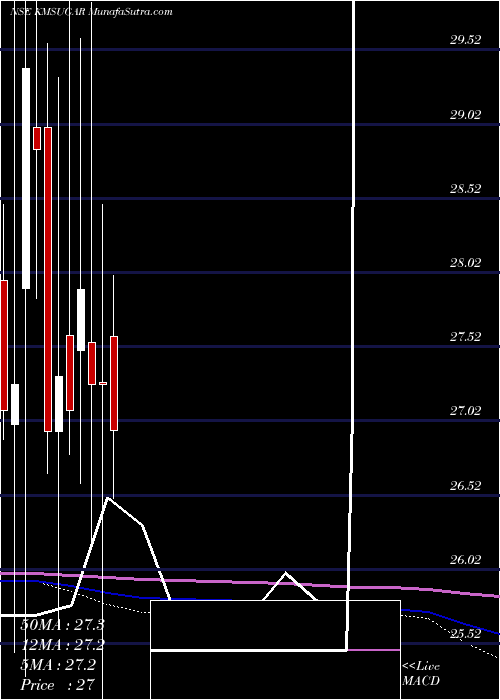 Volume Weighted Averaged Price (VWAP) for short term is 27.37 and KM KMSUGAR stock is trading below this level. This means that stock is falling with high volumes. VWAP is falling down
