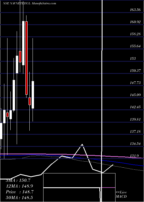 Volume Weighted Averaged Price (VWAP) for short term is 150.01 and NavneetEducation NAVNETEDUL stock is trading below this level. This means that stock is falling with high volumes. VWAP is rising upwards.