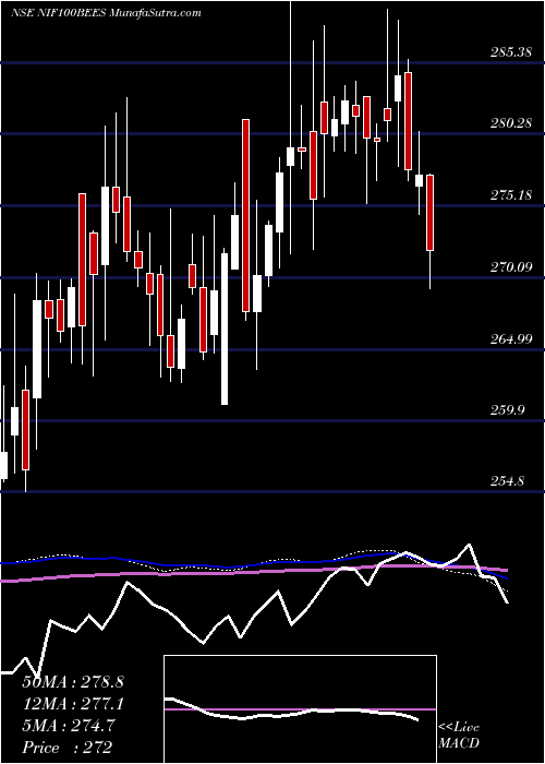 Tomorrow's movement Prediction of Nip Ind NIF100BEES is bearish. The stock has broken weekly support. An up move can be expected only after it starts trading above 275.97