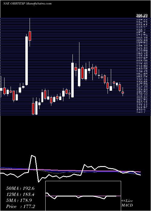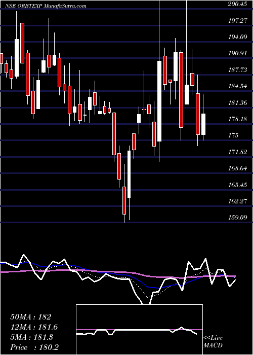 Volume Weighted Averaged Price (VWAP) for short term is 184.01 and OrbitExports ORBTEXP stock is trading below this level. This means that stock is falling with high volumes. VWAP is falling down