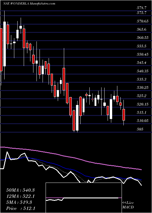 Volume Weighted Averaged Price (VWAP) for short term is 520.78 and WonderlaHolidays WONDERLA stock is trading below this level. This means that stock is falling with high volumes. VWAP is falling down