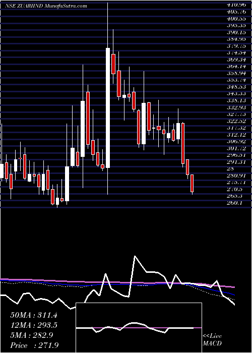 Volume Weighted Averaged Price (VWAP) for short term is 293.88 and ZuariIndustries ZUARIIND stock is trading below this level. This means that stock is falling with high volumes. VWAP is falling down
