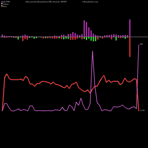 PVM Price Volume Measure chartss of daily price volume action, Weekly price volume action, Monthly price volume action of AHTPF NYSE