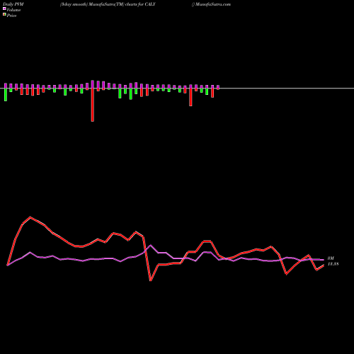 PVM Price Volume Measure chartss of daily price volume action, Weekly price volume action, Monthly price volume action of CALY NYSE