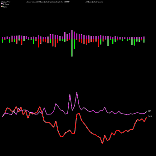 PVM Price Volume Measure chartss of daily price volume action, Weekly price volume action, Monthly price volume action of CMTG NYSE