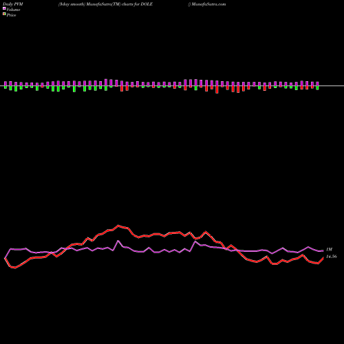 PVM Price Volume Measure chartss of daily price volume action, Weekly price volume action, Monthly price volume action of DOLE NYSE
