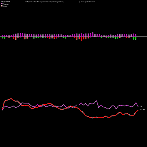 PVM Price Volume Measure chartss of daily price volume action, Weekly price volume action, Monthly price volume action of LNG NYSE