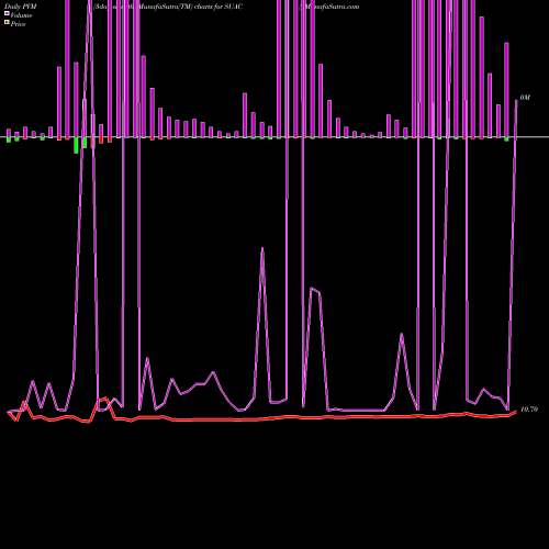 PVM Price Volume Measure chartss of daily price volume action, Weekly price volume action, Monthly price volume action of SUAC NYSE