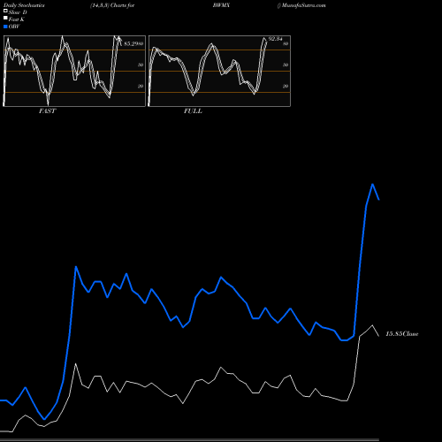 Stochastics Fast,Slow,Full chartss of Daily stochastics, Weekly stochastics, Monthly stochastics of BWMX NYSE