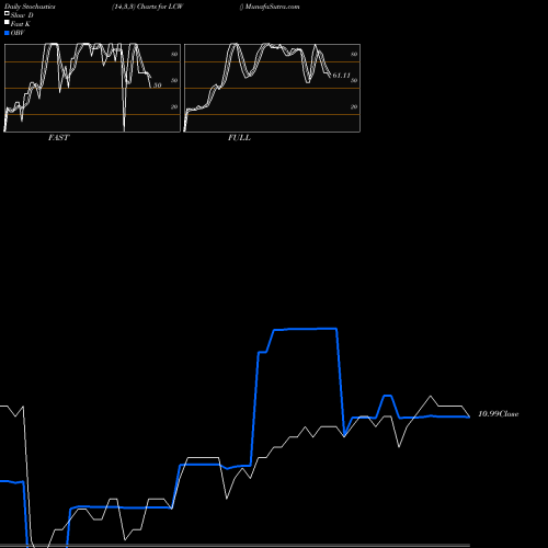 Stochastics Fast,Slow,Full chartss of Daily stochastics, Weekly stochastics, Monthly stochastics of LCW NYSE