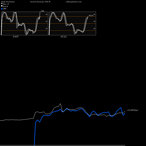 Stochastics Fast,Slow,Full chartss of Daily stochastics, Weekly stochastics, Monthly stochastics of SOC.W NYSE