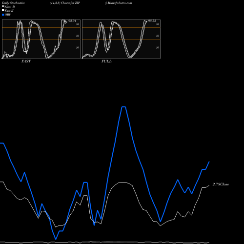 Stochastics Fast,Slow,Full chartss of Daily stochastics, Weekly stochastics, Monthly stochastics of ZIP NYSE