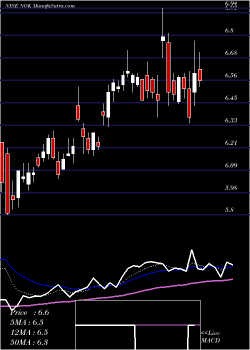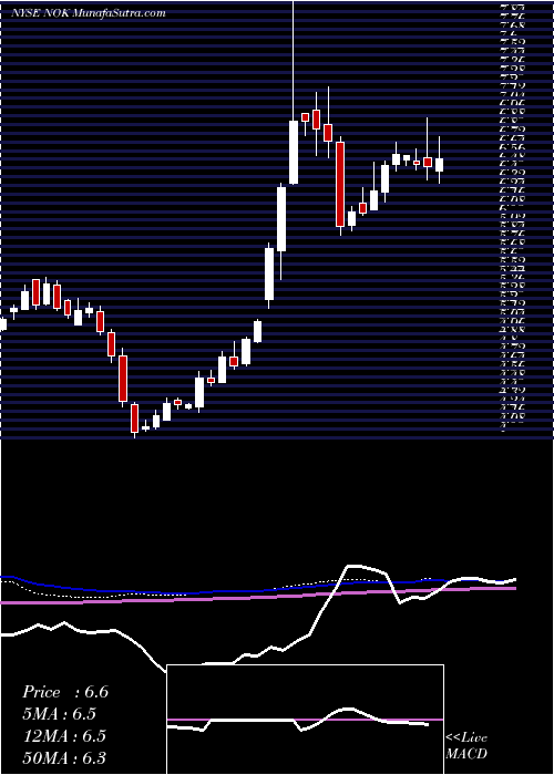 Volume Weighted Averaged Price (VWAP) for short term is 6.56 and NokiaCorporation NOK stock is trading below this level. This means that stock is falling with high volumes. VWAP is rising upwards.