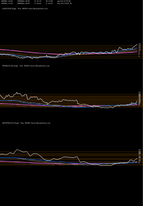 Trend of MODG Trend lines on Daily charts, Weekly charts, Monthly charts of MODG NYSE