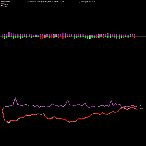 PVM Price Volume Measure chartss of daily price volume action, Weekly price volume action, Monthly price volume action of DTM USA