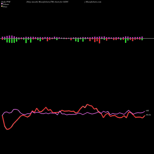 PVM Price Volume Measure chartss of daily price volume action, Weekly price volume action, Monthly price volume action of GEHC USA