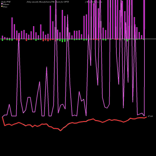 PVM Price Volume Measure chartss of daily price volume action, Weekly price volume action, Monthly price volume action of OPTZ USA