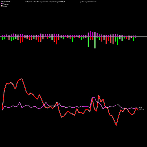 PVM Price Volume Measure chartss of daily price volume action, Weekly price volume action, Monthly price volume action of ROOT USA