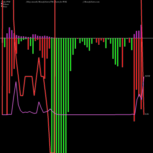PVM Price Volume Measure chartss of daily price volume action, Weekly price volume action, Monthly price volume action of WOK USA