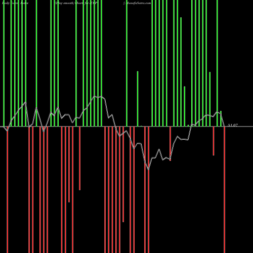 A force index chart is a relationship between price of stock and volume. Small bars are not of much significance, but a large bar tells that price either went up, or down, and volume was high too. If bars are red, it means prices fell compared to previous prices. The black line is the price line.