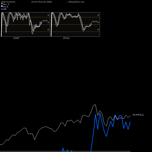 Stochastics Fast,Slow,Full chartss of Daily stochastics, Weekly stochastics, Monthly stochastics of QQQA USA