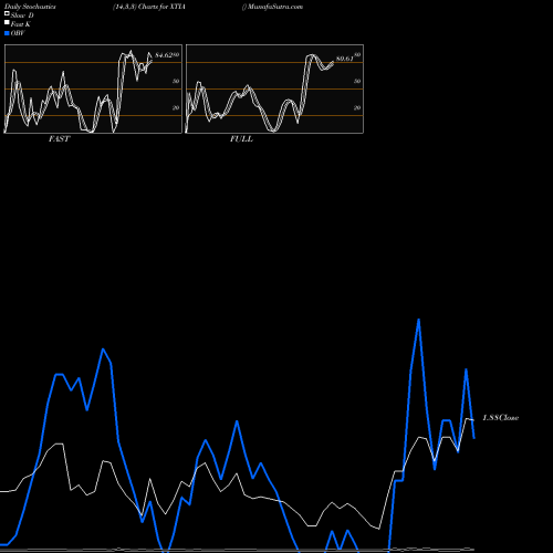 Stochastics Fast,Slow,Full chartss of Daily stochastics, Weekly stochastics, Monthly stochastics of XTIA USA