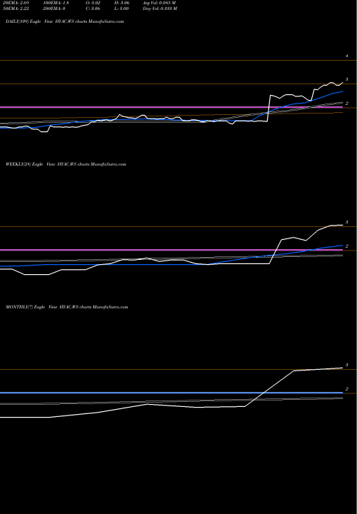 Trend of HYAC.WS Trend lines on Daily charts, Weekly charts, Monthly charts of HYAC.WS USA